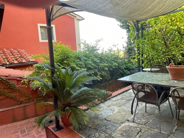 Nell'antico Borgo di Buggiano Castello in villa storica, caratteristico appartamento restaurato in tipico stile rustico toscano con particolari in pietra, travi, travicelli in legno a vista e mezzane in cotto, posto al piano primo composto da: ingresso soggiorno con camino, cucinotto, bagno, camera matrimoniale con bagno privato, cameretta/studio. Il soggiorno ha accesso al grazioso giardinetto privato con spazio per vivere all'aperto, attrezzato con forno a legna e zona lavanderia. L'appartamento è completamente arredato con mobili in stile toscano. Utenze singole, nel piazzale condominiale posto auto esclusivo. Classe Energetica G. IPE Kwh 274,82 m2 annuo.